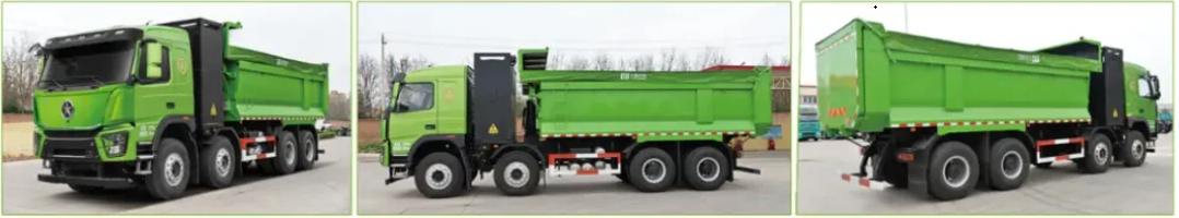 整车可配备多种货箱规格(5.6米-7.8米),搭载宁德时代282kWh、国电投CTB400kWh动力电池,匹配特百佳、精进大功率电机+4/6档AMT变速箱。通过全工况整车标定,功能更完善、能耗更低、高压更安全,保证整车动力性及经济性,实现整车综合性能最优,可满足城市渣土运输与重载倒短运输需求。