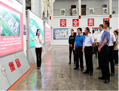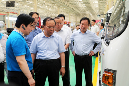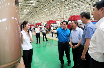 远勤山董事长向刘志宏书记介绍美高梅官方网站重卡、 新能源产品情况