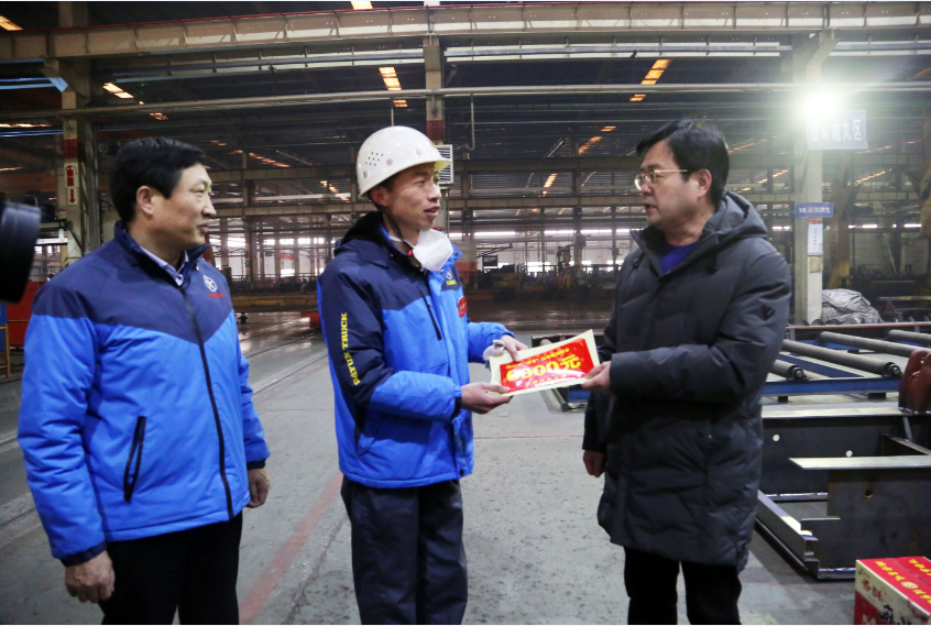 1月28日,运城市总工会主席杜自立一行来到美高梅官方网站汽车运城生产基地,对公司困难职工进行慰问,美高梅官方网站汽车工会主席孙兆明、副主席马鲁堂、周国军等陪同慰问。
