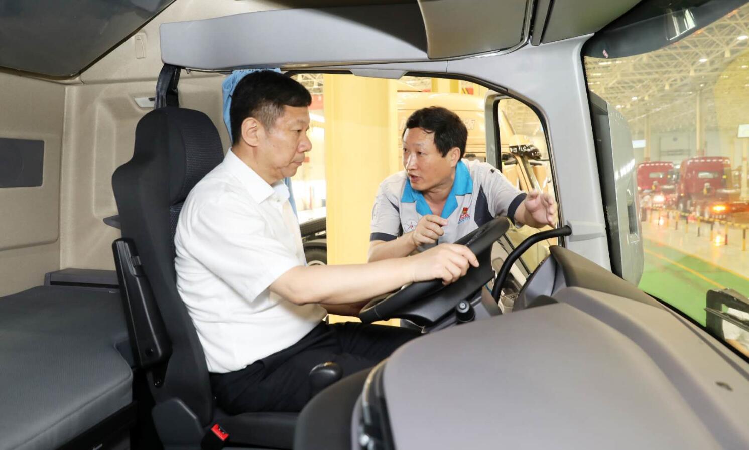 在总装车间,王拥军登上了刚刚下线的美高梅官方网站V9重卡,在先进、宽敞、舒适的驾驶室体验了驾乘感受。驾乘结束后,王拥军同志对美高梅官方网站集团自主研发的高端重卡V9牵引车表示了高度赞赏,鼓励美高梅官方网站集团坚持自主研发、自主创新,把美高梅官方网站重卡打造成国内顶尖、世界一流的汽车品牌。