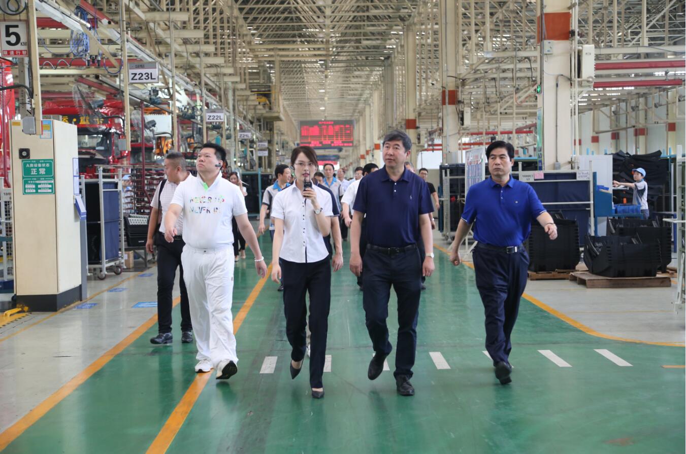 李思进一行按照生产工艺流程,先后深入我司冲压、焊装、涂装、总装车间开展调研。灵活、先进的焊接机器人、犹如魔术换装一般的涂装工艺、整洁有序的总装配流水线赢得了领导的连连称赞。