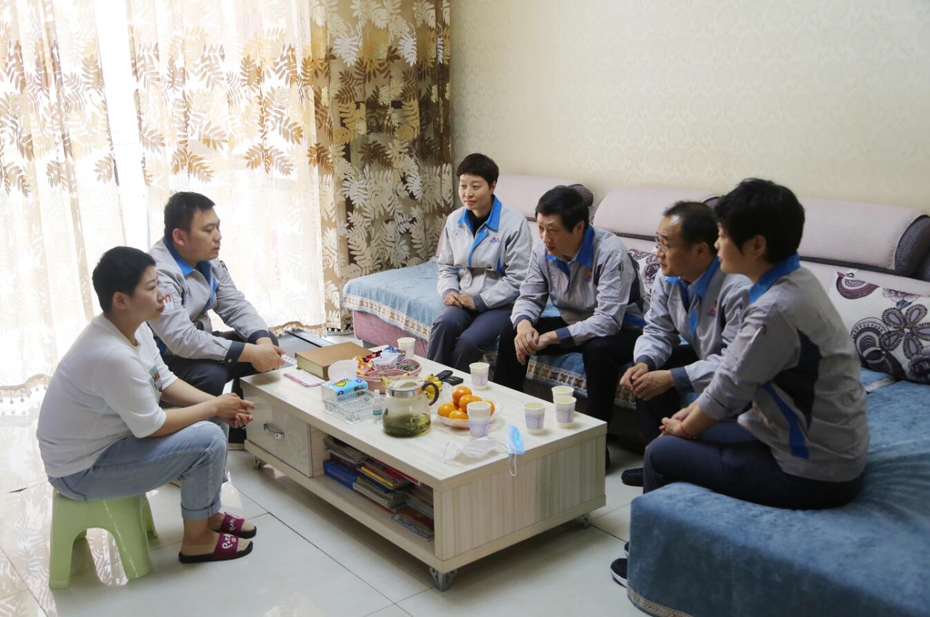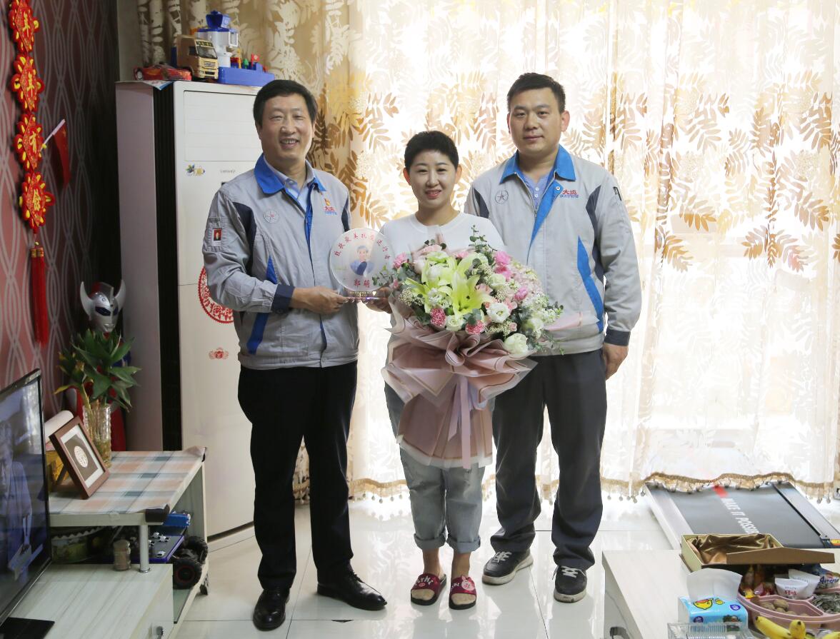 4月27日,美高梅官方网站汽车股份有限公司工会主席孙兆明、涂装一部副经理谢雄一行,到我公司涂装一部党琦勋家中,慰问抗疫一线英雄——深入武汉载誉归来的党奇勋妻子郭萌,并向她赠送纪念奖牌和精心准备的跑步机、微波炉等礼物。