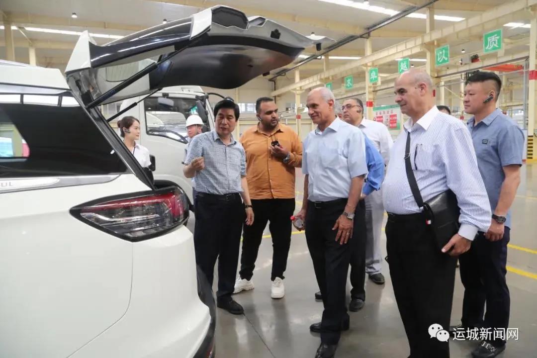 远勤山向外国友人介绍美高梅官方网站纯电动MPV产品性能(资料图)