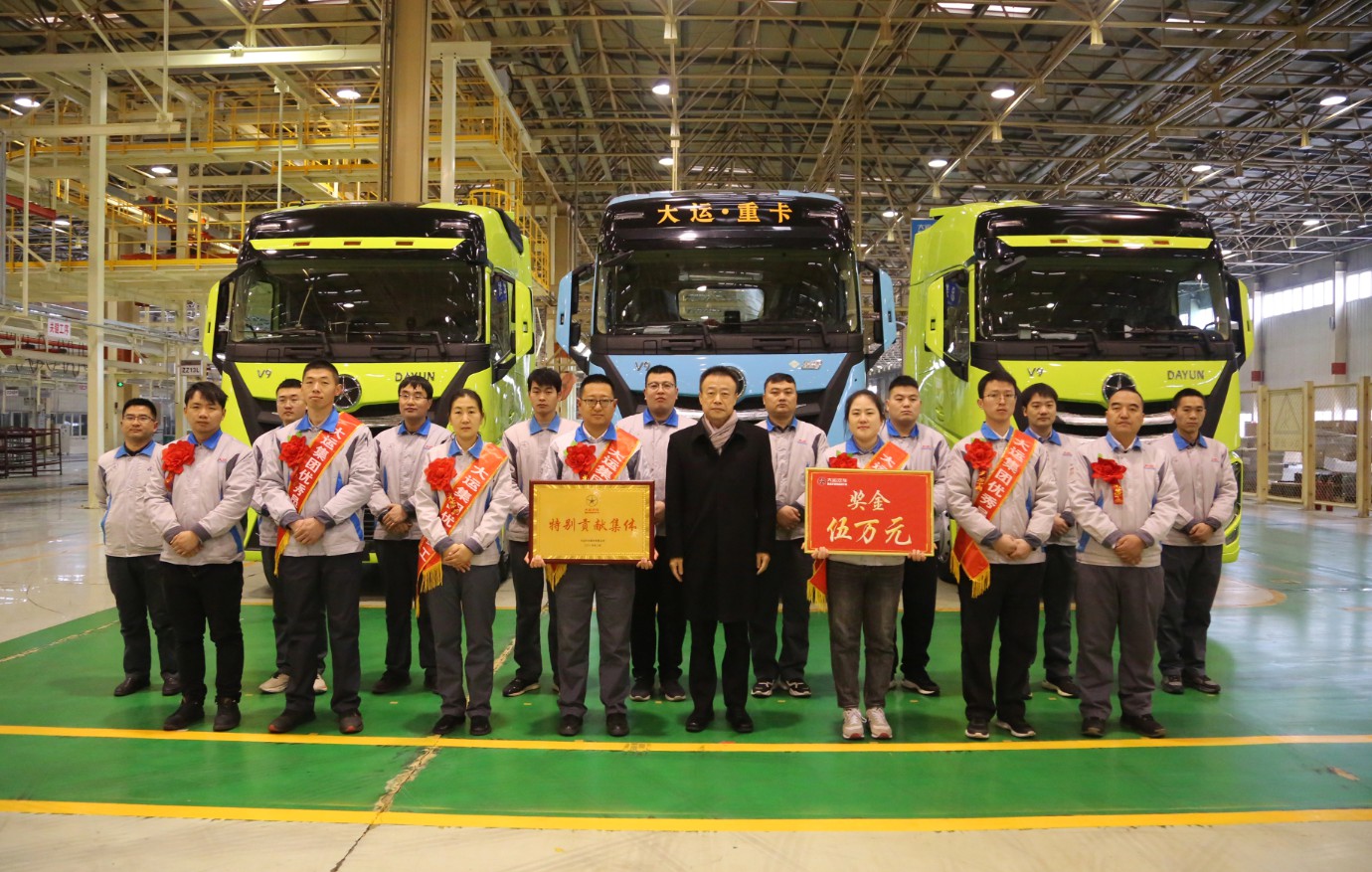 公司各副总领导也分别前往各生产车间、办公区域进行现场颁奖。采购事业部总经理远洋在办公楼为车联网及信息化部、人力资源部、重卡财务部、营销支持部、重卡售后服务部、新能源商用车服务部的优秀管理者、优秀员工进行了颁奖;乘用车采购副总刘卓志来到乘用车涂装车间、总装车间为获奖员工进行颁奖;生产中心副总孙兆明来到重卡技术中心、重卡质控部和行政办公室为获奖员工进行颁奖;乘用车技术副总周宏伟来到乘用车营销中心、采购部、财务部、销售综合部、售后服务部为获奖员工进行颁奖;重卡销售总经理张晓来到冲焊车架部和重卡总装部为获奖员工进行颁奖;行政副总郭进峰则来到经营审计处、总经办、重卡仓储物流部、重卡采购部、重卡售后配件部、车桥制造部为获奖员工颁奖;乘用车营销副总陈雅琴来到乘用车技术中心为该区域获奖员工进行颁奖;乘用车营销副总苏尉来到乘用车冲焊车间、设备能源部、pack车间为获奖员工进行颁奖。