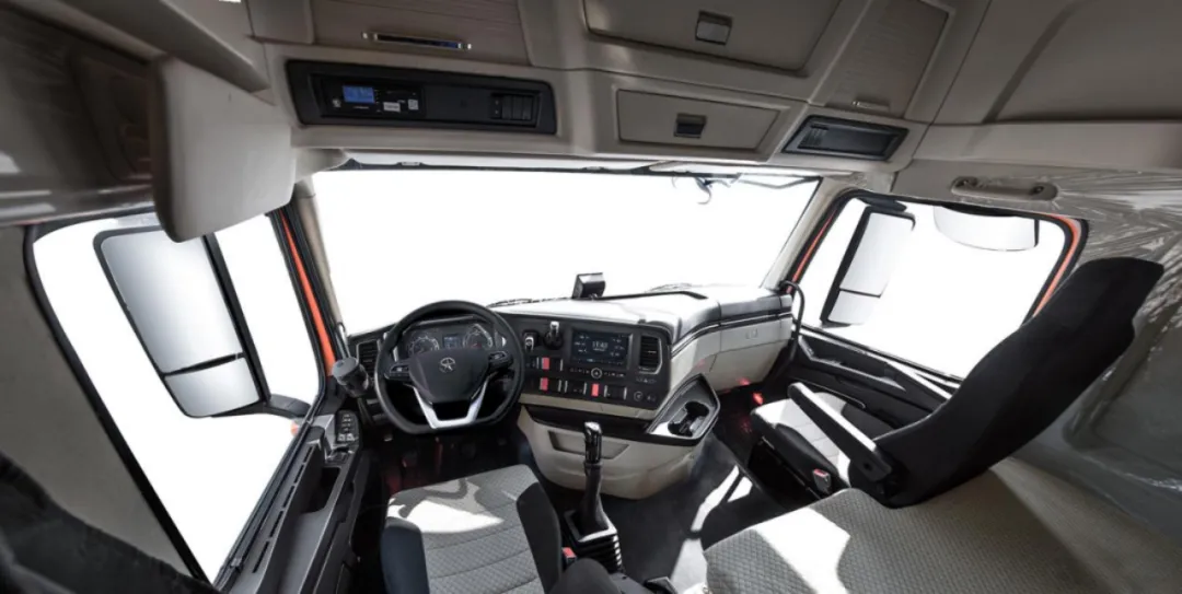 此外,工作台部分采用环绕式仪表台,驾乘平台层次分明,仪表显示区和中控区紧密联系,形成半封闭式的操作空间,无需驾驶员大幅度移动控制按键,卡友在行驶中操作功能更加便捷。