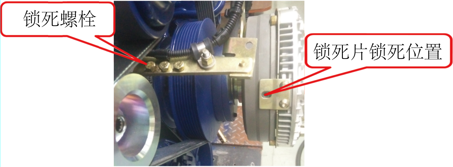 处理方法:当电磁风扇出现故障时,将三个锁死螺栓拆下,安装于锁紧片锁死位置。