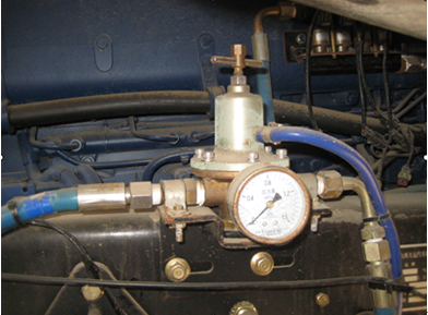 4. 检查调压阀:使调压压力稳定在0.8MPa即可,发动机工作压力(0.8—1.0)MPa。调压阀出口压力范围:(0.7—1.4)MPa。气压不稳、调整不到位时,可以更换调压阀。