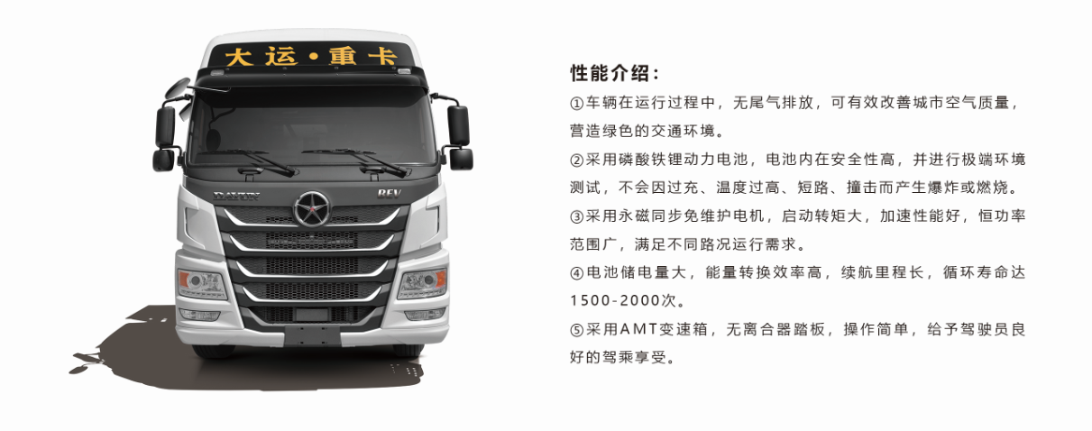 为积极响应国家新能源政策,满足市场新能源产品需求,美高梅官方网站汽车以领先的技术优势,倾力打造“纯电动牵引车”。该车整车轻量化设计,载重量领先竞品,驱动电机高效节能,续航里程长,广泛适用于港口、矿山、货场等各类短途运输。
