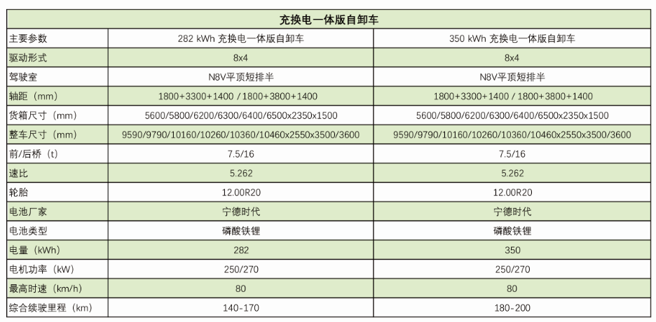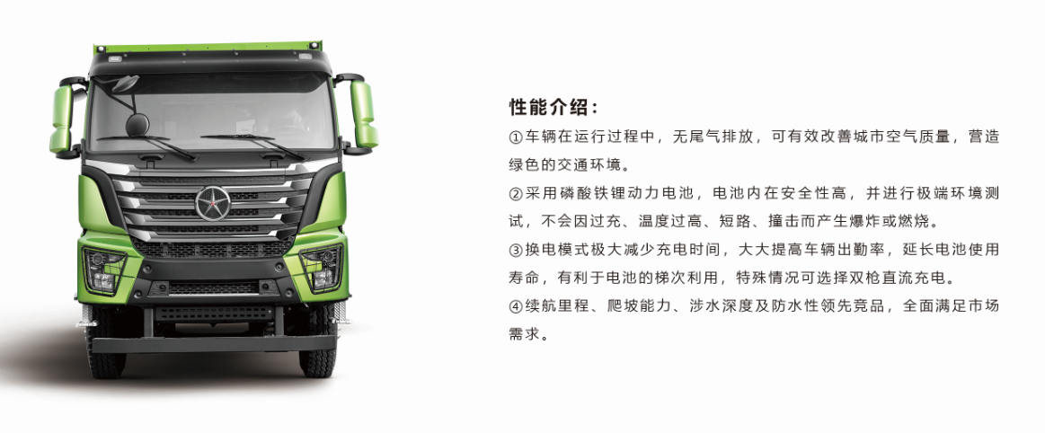 为积极响应国家新能源政策,满足市场新能源产品需求,美高梅官方网站汽车以领先的技术优势,倾力打造"充换电一休版自卸车”。该车采用磷酸铁锂动力电池,起步扭矩大,驱动电机高效节能,续航里程长,广泛适用于矿山、城建渣士等各类短途运输。